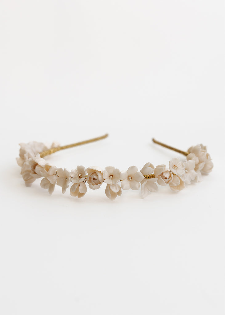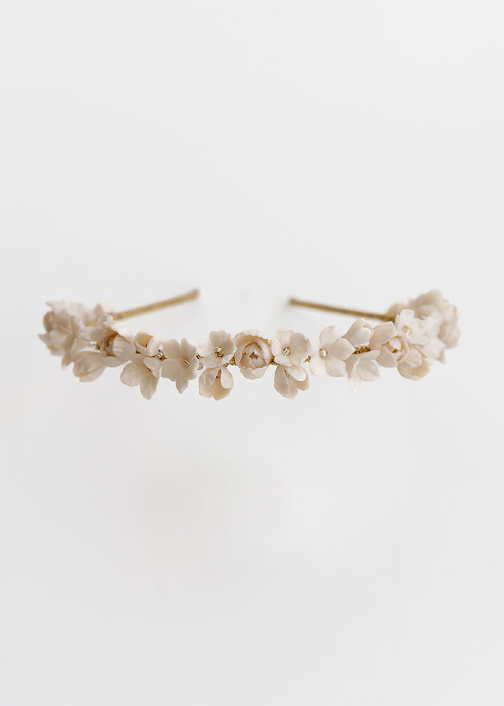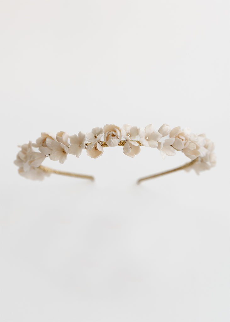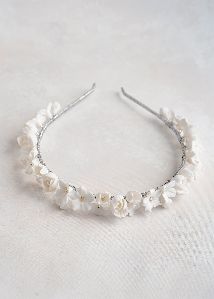 Ada Floral Wedding Headpiece is a true masterpiece, discover it beauty with all its beautifully handcrafted flowers as its main highlight. Each flower is carefully arranged to create a beautiful floral display. Ada is not only a stunning design, but it is also a comfortable piece that will enhance the beauty of your chosen design.