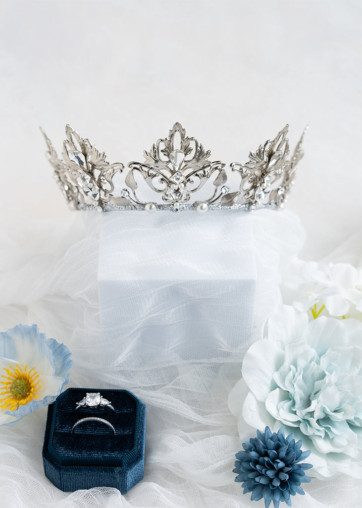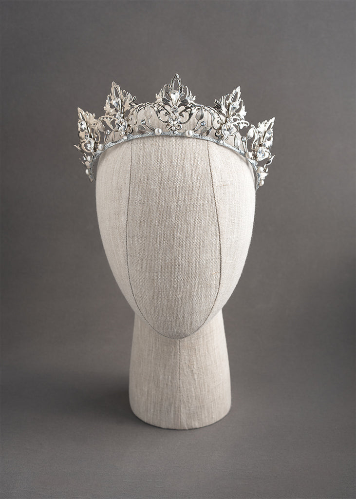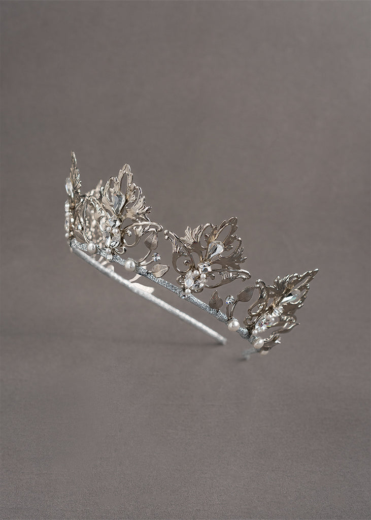 Monaco Wedding Crown is perfect for brides in search of a sophisticated and elegant design. The rhinestone and pearl accents, perfectly enhance its breathtaking appearance which exudes femininity and romance, making it a perfect statement style. The Monaco Wedding Headpiece is perfect for a variety of dress styles and wedding hair looks.