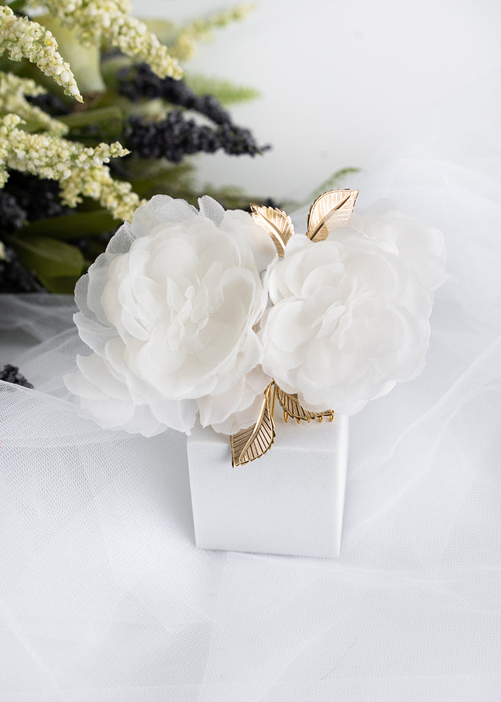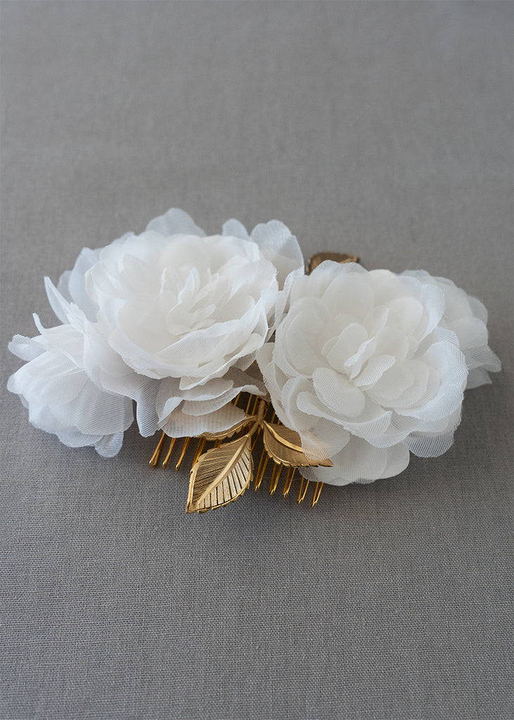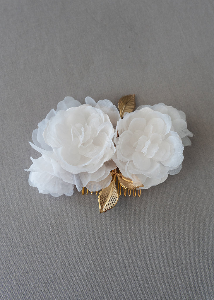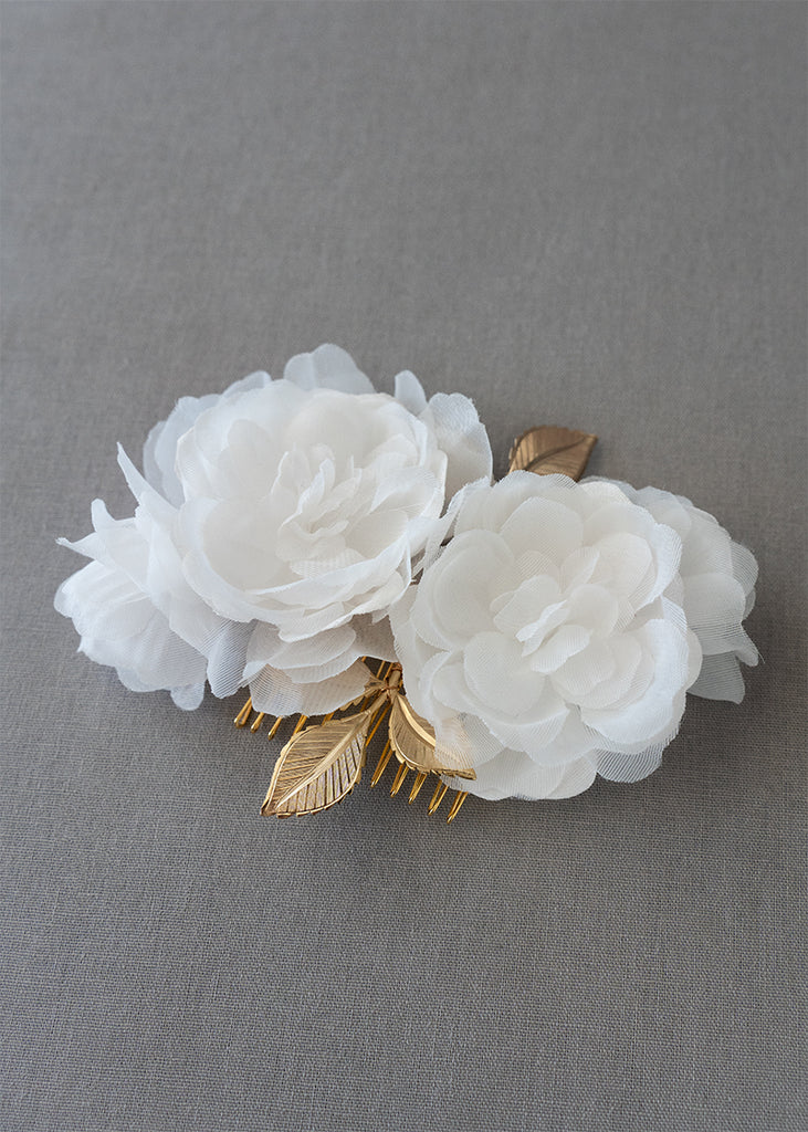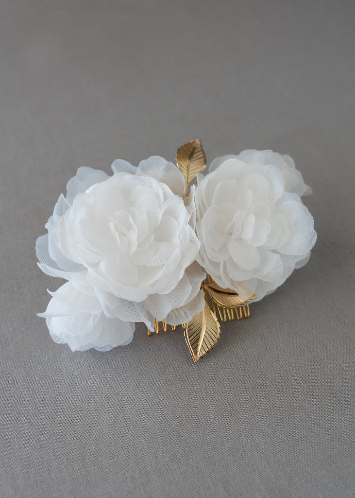 Zendaya floral wedding headpiece will elevate your bridal look. It's a masterpiece that captures the essence of flowers in full bloom, all delicately arranged for a beautiful look. Choose from gold, silver, or rose gold accents on the leaves to enhance the design's allure. Modern yet timeless, this bridal comb exudes a sense of luxury and refinement.